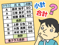 クラスごとの数値の合計や平均などを集計したいのですが、関数を利用して、合計や平均などを瞬時に求める方法はありませんでしょうか?